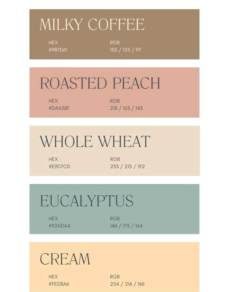 The palette and moodboard I provide here are personal combinations I created for #AprilChallengeByAndrea (Week 2 – Pastry wallpaper), the pattern challenge I promoted on Instagram. The color palette and hex color codes are from GoodMoods Graphics Co (Photo credits below)
