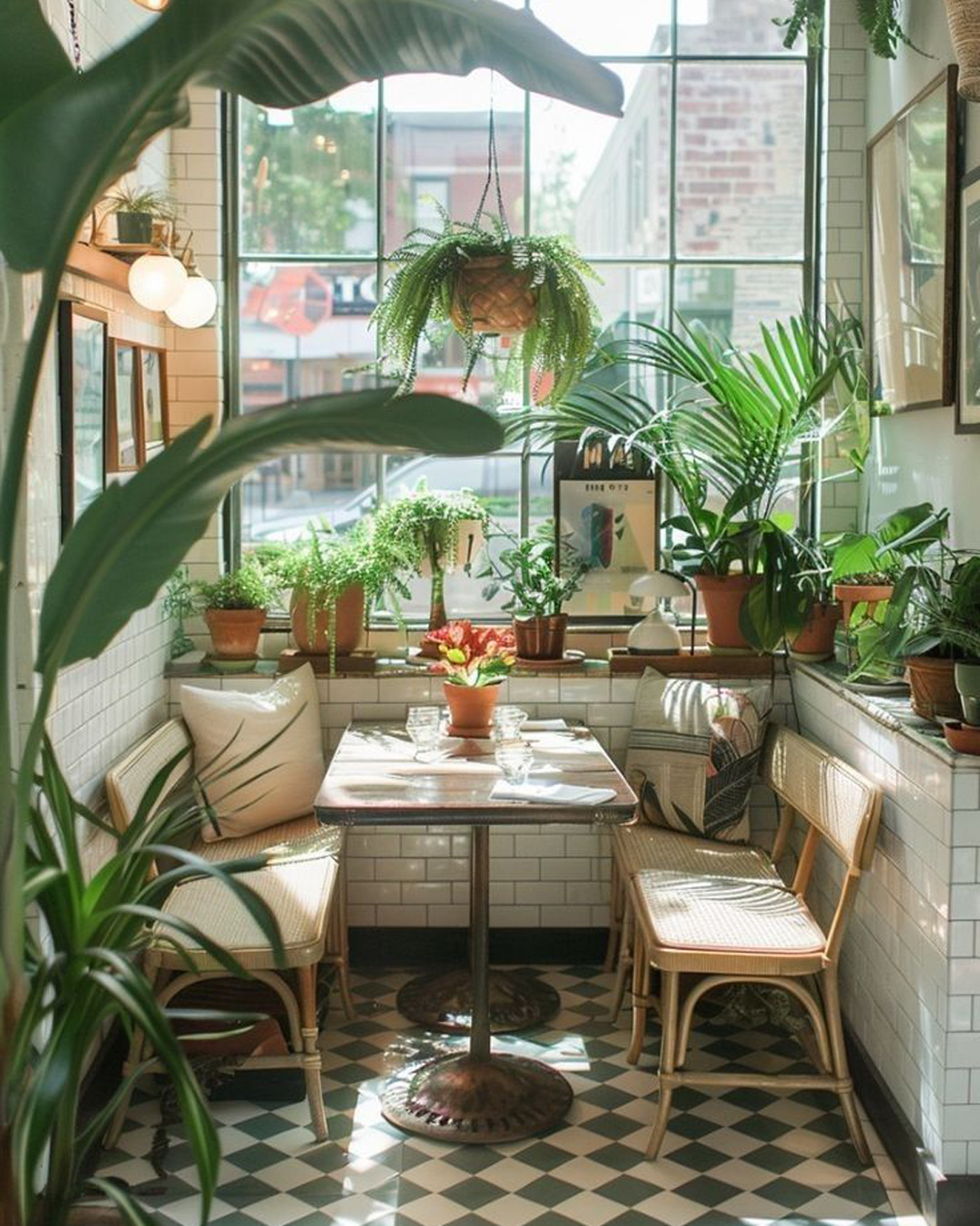 A group of friends in their thirties wanted to create a warm and welcoming space to revitalize their street and connect local residents. They took over a former commercial space and transformed it into a neighborhood canteen. The cuisine is simple yet refined, showcasing organic and local produce. In terms of decor, they favor vintage vibes: the bottom of the walls is tiled in white, the furniture was second-hand and repainted in pastel shades, matching the palette below!