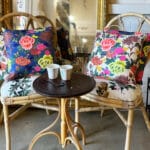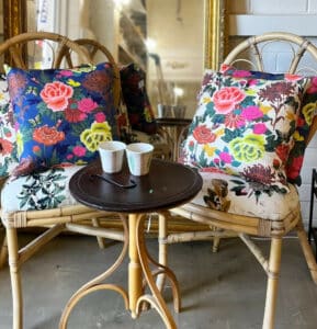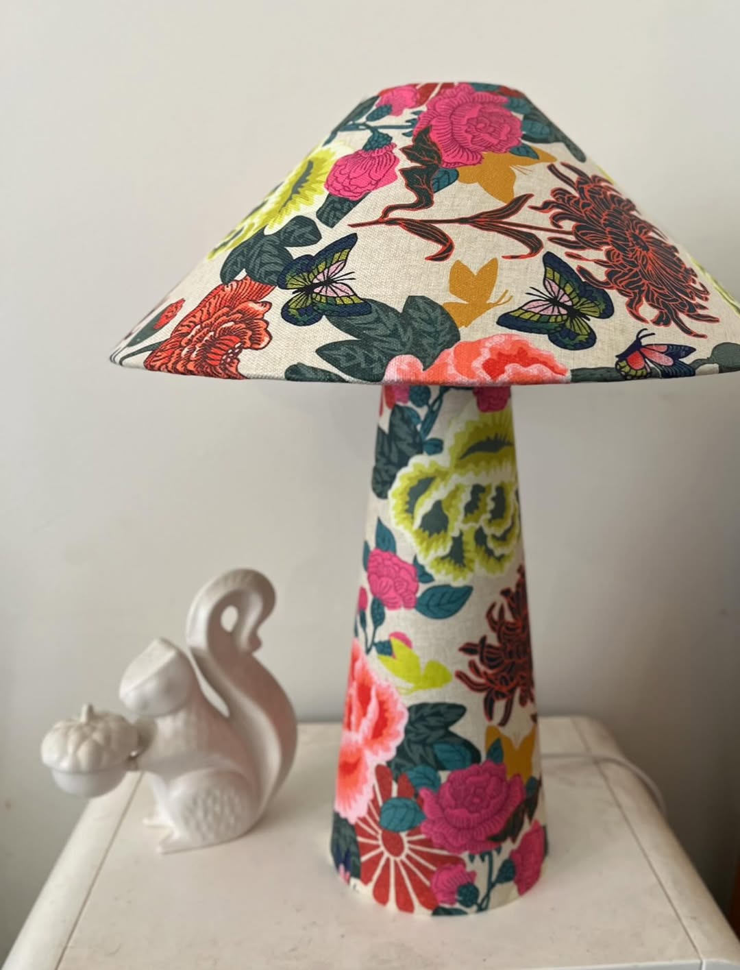 Tango & James is an upholstery workshop based in Canberra, Australia. Two color variations of my Chinoiserie floral pattern were used to cover lamps, lampshades, cushions and armchairs.