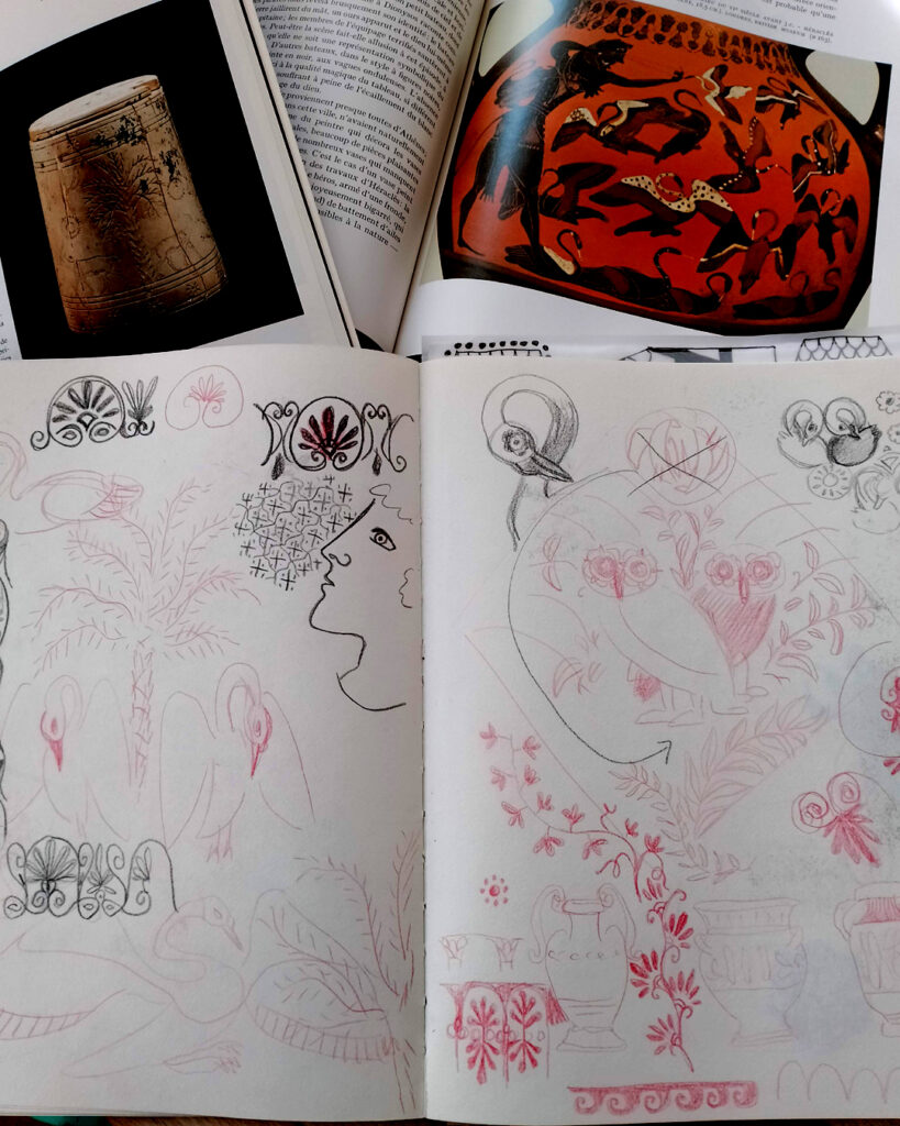 And my ambition is that my ‘Antique birds’ pattern will be a kind of echo of this shared mythological past.