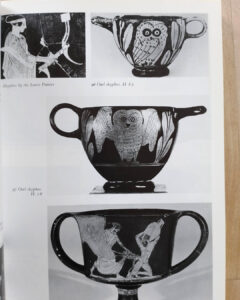 John Boardman, Athenian red figure vases, the classic period, WOrld of Art edition; Silver coin depicting Athena’s owl Musée des Beaux-Arts de Lyon, France.